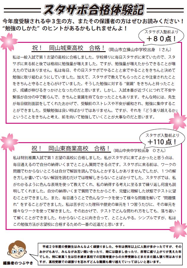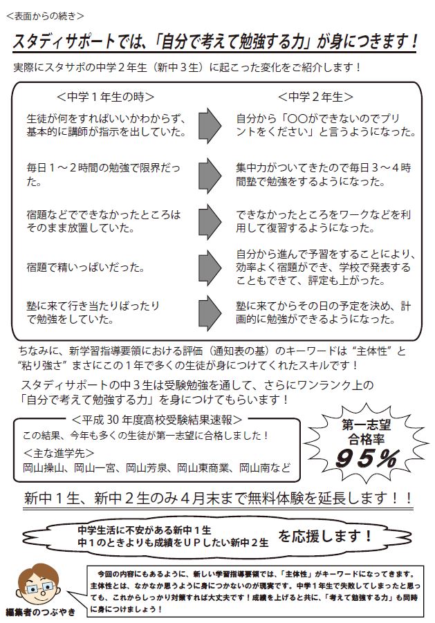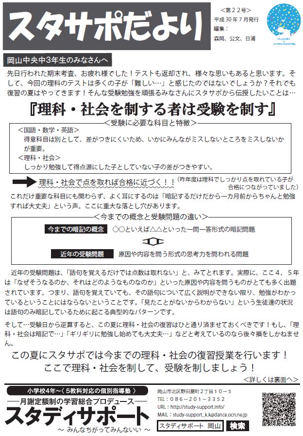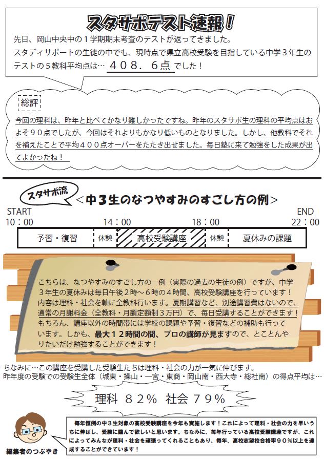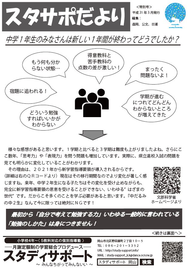 <「スタサポだより」特別号(中2)>