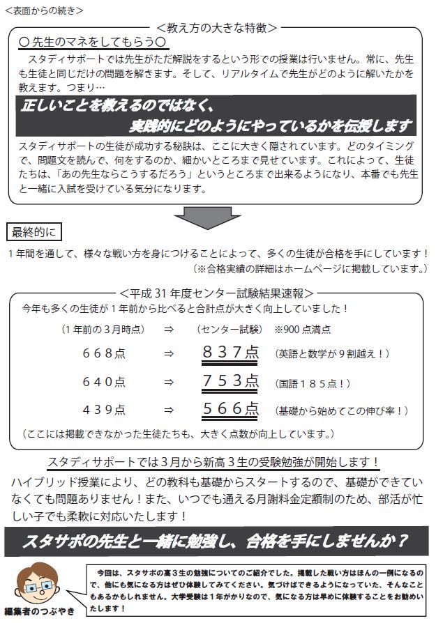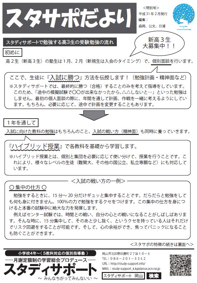 <「スタサポだより」特別号(高3)>