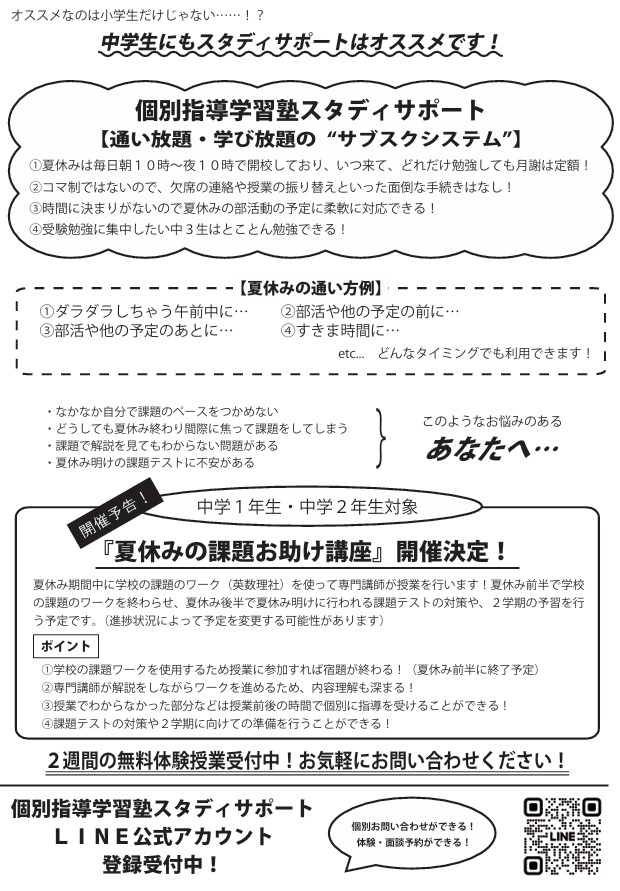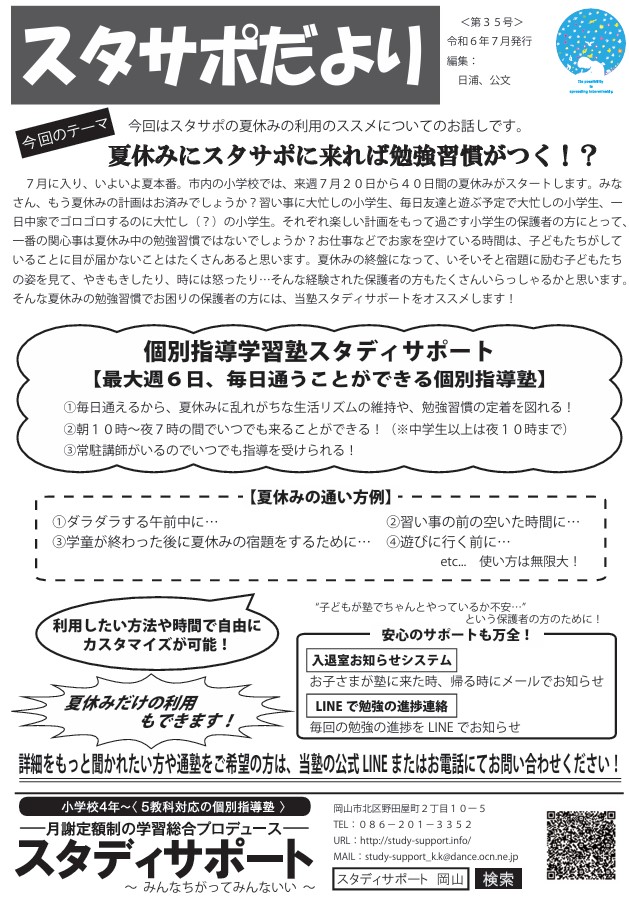 今までに発行したスタディサポート通信「スタサポだより」のバックナンバーを掲載しています。 画像をクリックすると拡大してみていただけます。