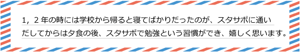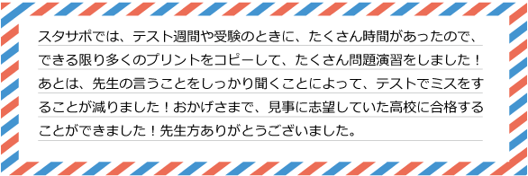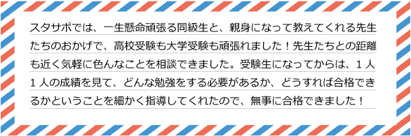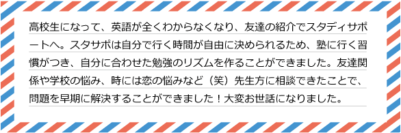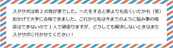 スタディサポートの生徒達(卒業生含む)からいただいた声です。